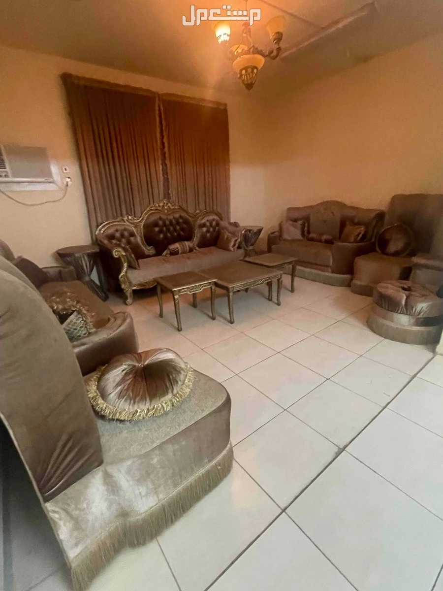 كنب للبيعع سبع قطع فيها خشب فخم ثلاثة كنبات كبيرة و اأربعة مفرد واريكة وحدة وثلاث طاولات قماش وثلاث طاولات خشب وستارة كبيرة شبه جديد