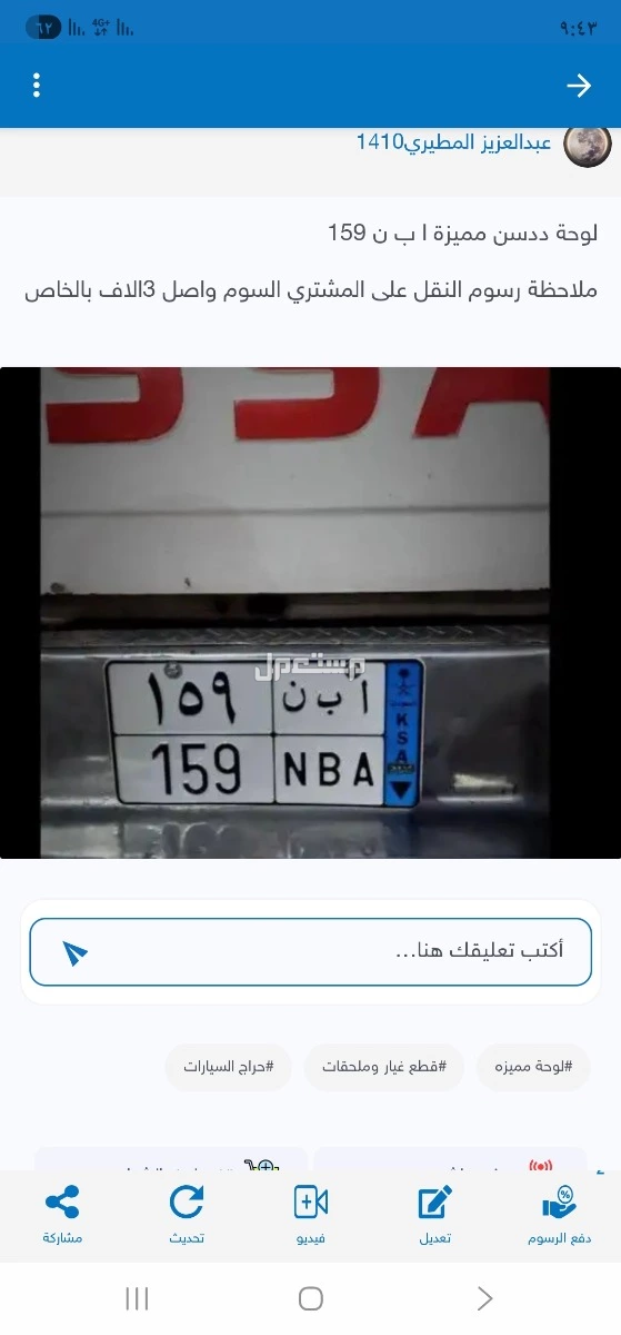 لوحة مميزة ا ب ن - 159 - نقل خاص في الرياض بسعر 3 آلاف ريال سعودي