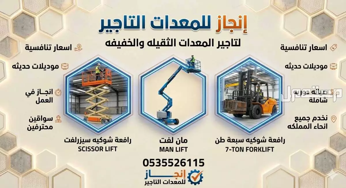 انجاز للمعدات التااجير لتاجير المعدات الثقيله ولخفيفه لتواصل 0535526115