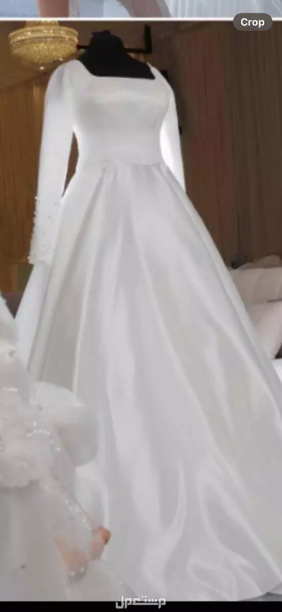 فستان زفاف أبيض سادة قماش تفته باكمام طويلة مع لؤلؤ على الاكمام ، طرحة طويله وفخمه جدا مزينه بالورود واللؤلؤ والبلور اللماع ،الفستان تصميم خاص كلاسيك ساتر فخم وراقي جدا ، استخدام مره واحدة وبحالة ممتازه ، المقاس من 12 لـ14 يعني ميديم لارج ، قابل للتوسيع بربطات من الخلف .