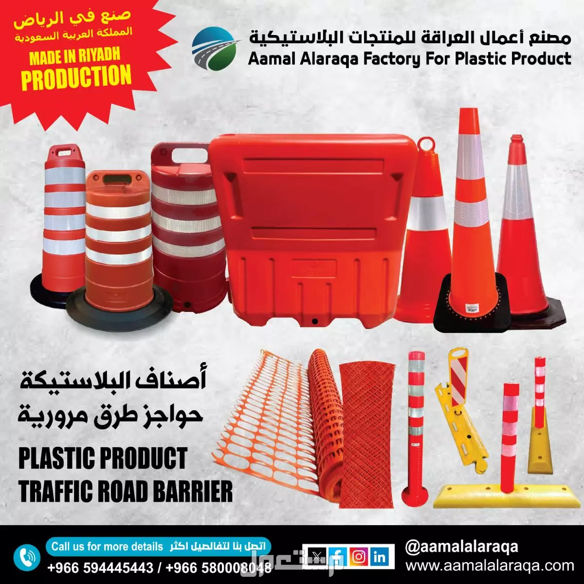 متخصصون بأنتاج الحواجز البلاستيكية والاقماع وبراميل المرور