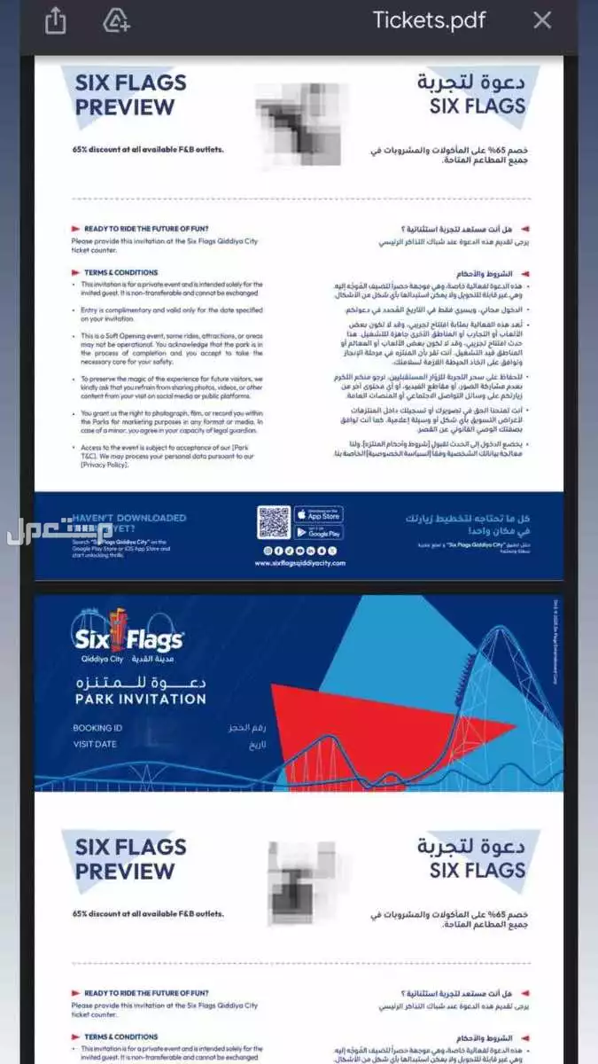 يوجد عدد تذكرتين لملاهي القديه فالموقع التذكره سعرها 335 السعر النهائي 250 التذكره شامله الاكل والشرب والالعاب تنتهي التذكره بعد ثلاث شهور يعني مالها يوم محدد
