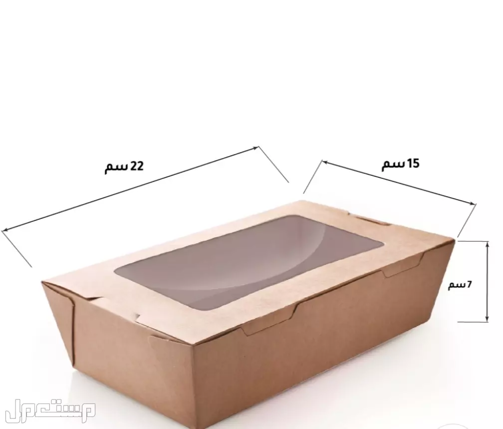 متوفر عندي علب كرافت بنافذة بمقاسين السعر قابل للتفاوض المقاس الكبير 66 اونصه الطول 22 - العرض 15 - الارتفاع 7 سم السعر 1.5ريال للحبه - المقاس الصغير 40 اونصه الطول 20 - العرض 13 - الارتفاع 5 سم السعر 1ريال للحبه