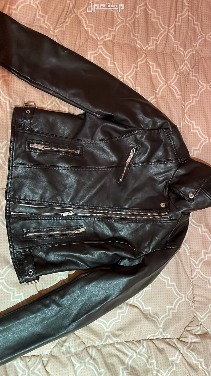 جاكيت جلد اسود للبيع مقاس ميديم