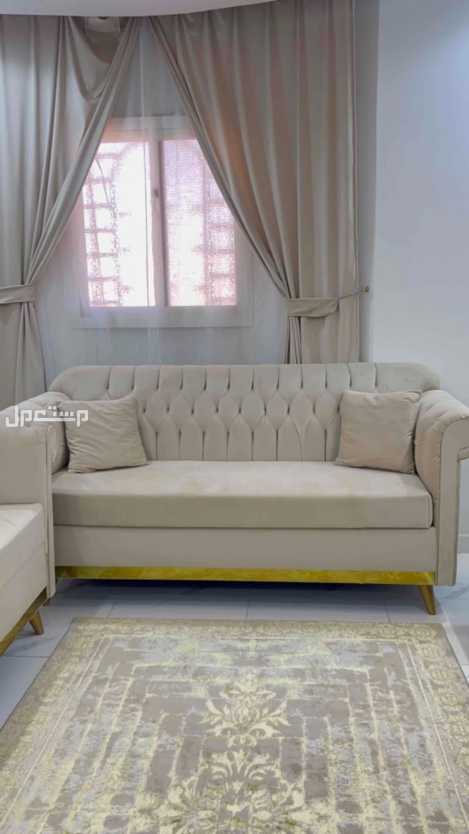 كنب صالة مكون من 5 قطع جديد جداً ولا فيه اي عيوب سبب البيع التغيير ، مع الموكيت والستارة وكلهم جديده مافيها لابقع ولا عيوب