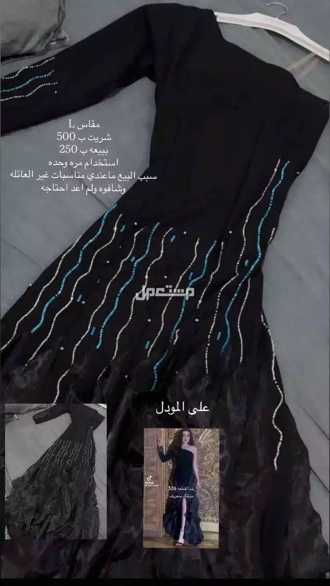 فستان عرس كشخه اسود للعمر20وفوق مقاس L قماش قابل لتمدد استخدام مره واحده نظيف سبب البيع مافيه مناسبات كبيره فقط عائليه