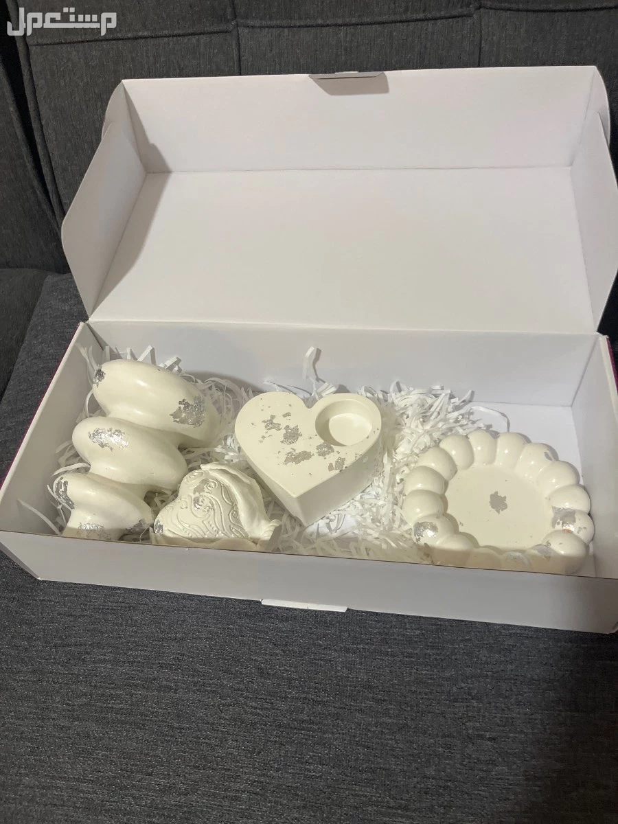حامل شموع +حامل كوب +فازة +مجسم على شكل قلب لون ابيض مع فضي يتوفر طقم بلون كحلي بنفس السعر سعر50ريال