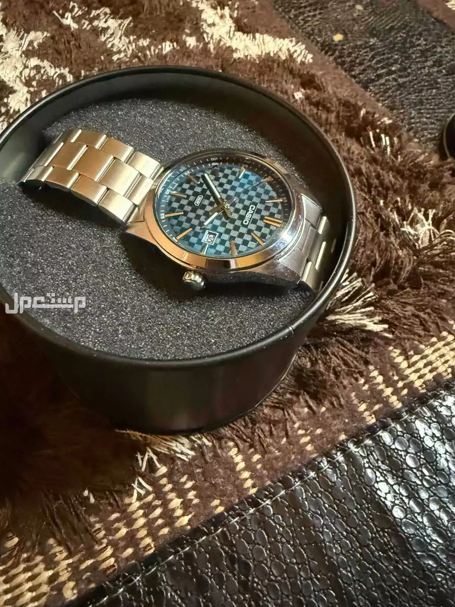 ساعة كاسيو موديل Mtp-VD03D-2A2UDF لون الميناء سماوي لامع مع الاضاءه والشمس ، مقاومه للماء ، السوار فولاذ مقاوم للصداء نظيفه استعمال بسيط جدا مايتجاوز شهر مع علبتها المعدنيه