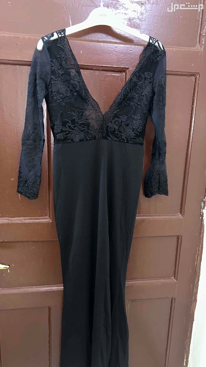 فستان سهرة اسود جديد غير مستعمل مقاس صغير سمول s يلبس وزن 50-60 كم ماسك على الجسم القماس فوق دانتيل و اللي تحت قماش مرن