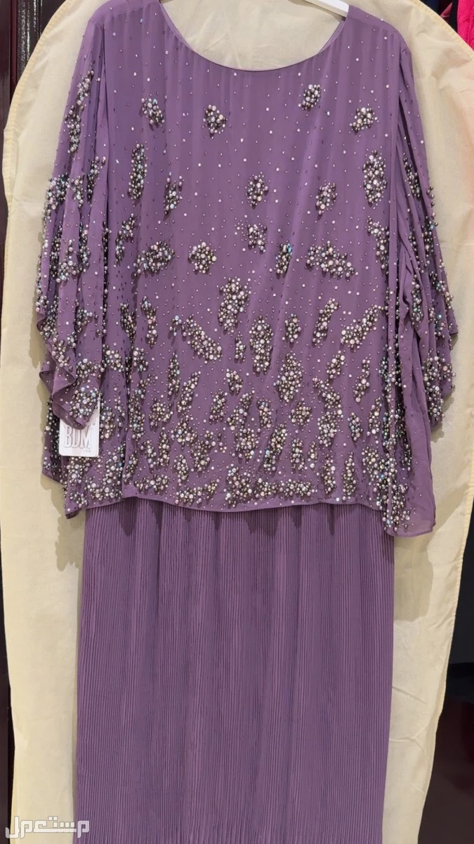 فستان موف نسائي مقاس xxxl جديد غير مستخدم في المدينه المنوره غير مستخدم جديد قماش مكسر من الاسفل ناعم فصوص ولولو