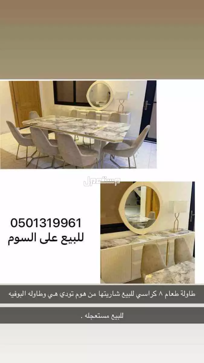 طاولة طعام 8 كراسي وبوفيه بسعر 3000ريال سعودي