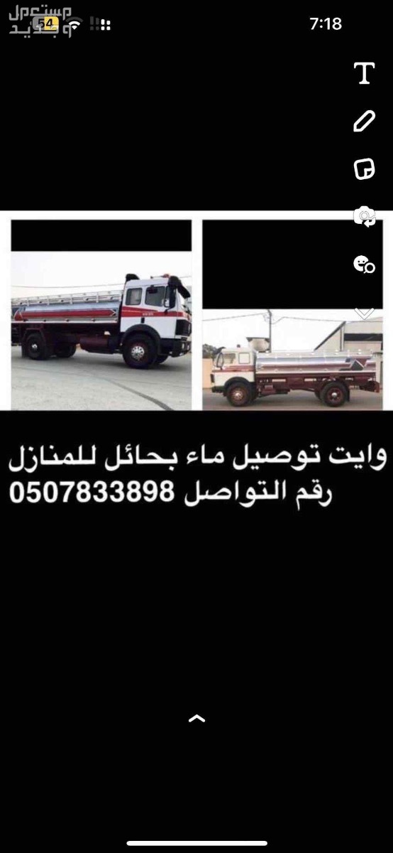 وايت ماء في عنيزة. مؤسسة بحار المحيط لتوريد المياه